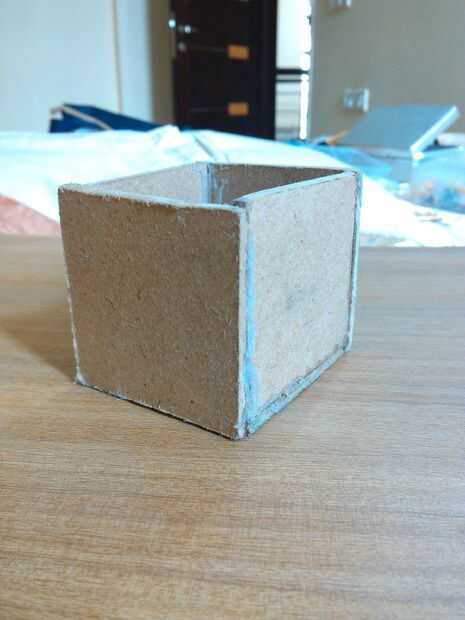 Después hemos hecho el cubo. Se lijan los bordes y los bordes superiores del cubo. (Lo siento no hay fotos)