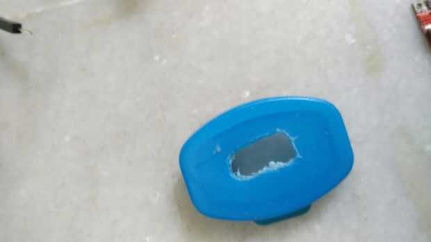 Entonces yo usando pulido poco que comencé a retirar la parte derecha e izquierda de los agujeros para montar el USB.