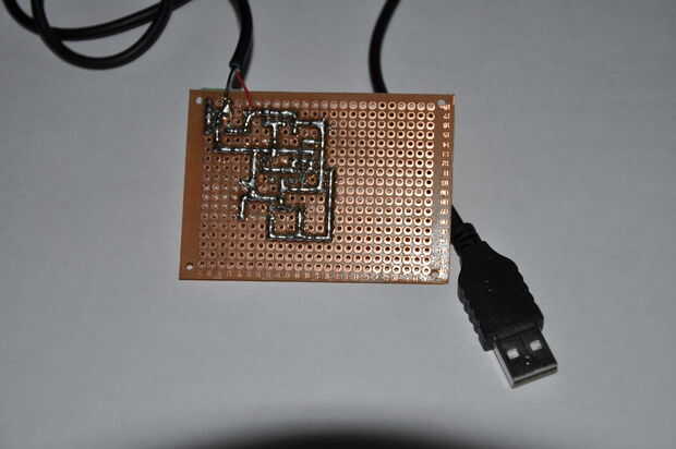 Conseguir a él... Si corte un cable USB estándar, usted verá un montón de cables. Usted sólo está interesado en el cable rojo (positivo 5VDC) y negro (C.C. tierra - negativo). Estas son sus conductores de alimentación que se aplicarán a 5VDC para la claqueta. Hay dos condensadores en paralelo con los cables rojo y negro. El condensador de 10uf es de rizo y la 0.1uf capcaitor es un condensador de desacople. EXCEDER de 10uf. De hecho, los 5v en el puerto USB ya es extremadamente estable, por lo que no es necesario utilizar este condensador. Allí coloqué para el rendimiento. Un "Por si acaso" tipo de cosas. 0.1uf condensador de desemparejamiento es para filtrar cualquier señales de alta frecuencia que pueden estar en la línea por una razón u otra. Cuando enchufa, el condensador parece un corto muerto en la línea durante unas milisegundos. El puerto USB puede soportar esto, pero si se utiliza un condensador de valor grande, tarda más tiempo en cargarse, y que potencialmente pueden dañar el puerto USB.