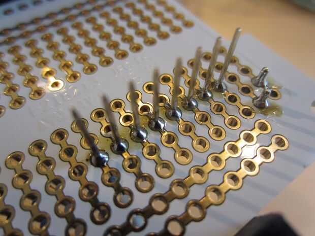 Una vez que han presentado todos los componentes, soldar con cuidado en los componentes, cortar las puntas cuando se hace. De nuevo, utilice los cuadros de referencia!