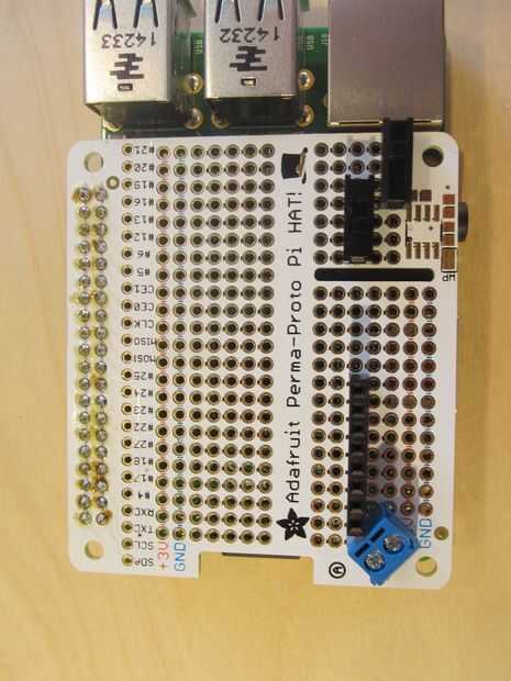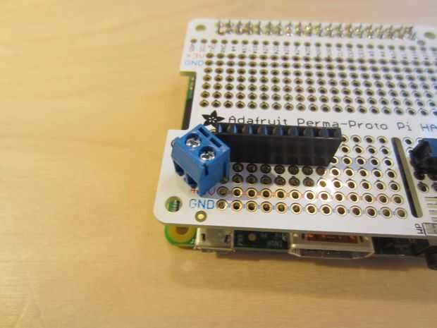 Empezar poniendo fuera de la terminal de tornillo, encabezado e interruptores en el sombrero de Raspberry Pi, como se muestra arriba. Es muy importante que usted conseguir estas piezas en los lugares correctos y orientación o las otras partes no caben! Seguir la primera foto arriba, de cerca, para la referencia!