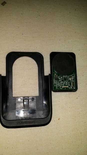Tomar la parte inferior de la caja y tire del borde fino más rectangular de la misma. Esto empujará hacia arriba y hacia fuera, exponiendo un cable de cinta y la placa de circuito. Los tornillos sólo son los que sostienen el cable de cinta a la carcasa interior. Mantenga el cable si lo desea, tiene un micro usb de la hembra y un macho manzana 30 pines. No es necesario para este proyecto. A continuación, empuje la Junta a través del orificio, aplicando fuerza en la parte de disco grande.