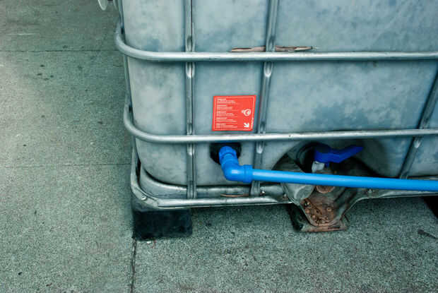 Instale una tubería de riego para enchufe que orina aguas grises dispersar a