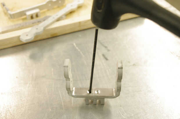 Utilizando el soporte de contrapeso como una guía de alineación para el soporte, marque los dos orificios de fijación central utilizando un punzón.