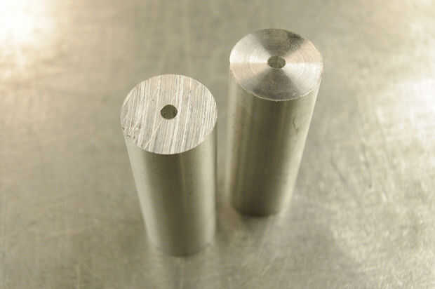 Tomé una de las barras de 3" y encontrar el punto central en cada una de las caras planas de las varillas.
