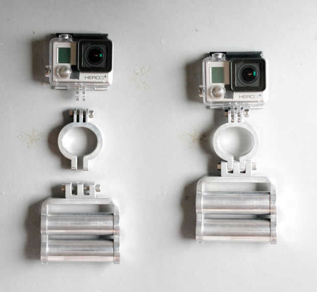 Para montar, emperna ambos el el soporte de contrapeso y la cámara GoPro en el anillo.