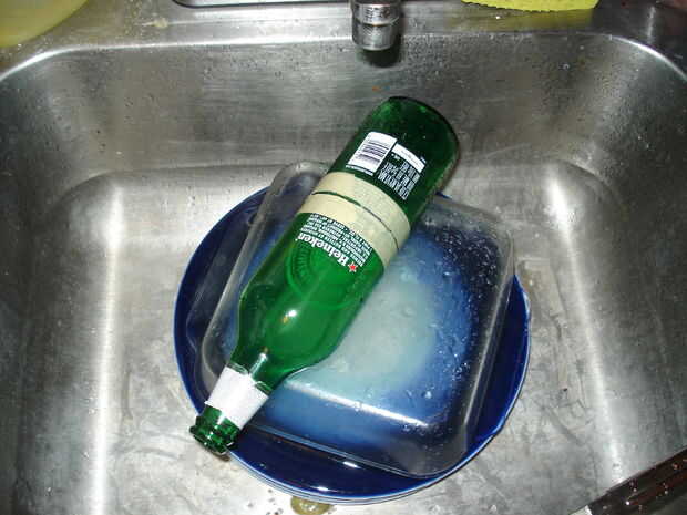 Utilicé un fregadero, pero usted probablemente puede montar una manguera si quieres trabajar fuera. Si trabajas sobre un fregadero, ajuste su botella sobre una base en el fregadero le dará su mayor libertad de movimientos. Un estante de plato del alambre al revés podría hacer una buena base.