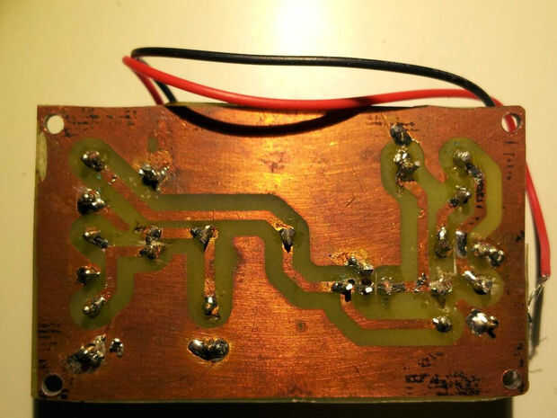 Al soldar en las piezas, cuide la polaridad en el caps / / diodo de rectificador y asegúrese de que el 7805 va por el camino correcto (GND/IN/OUT).