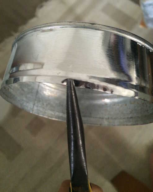 Utilice los alicates para doblar el borde como cerrar como 90 grados, poco a poco. Usted no puede ir demasiado lejos, las pinzas son demasiado largas. La ventaja de unas pequeñas pinzas da un total uniformemente doblados.
