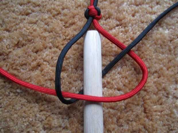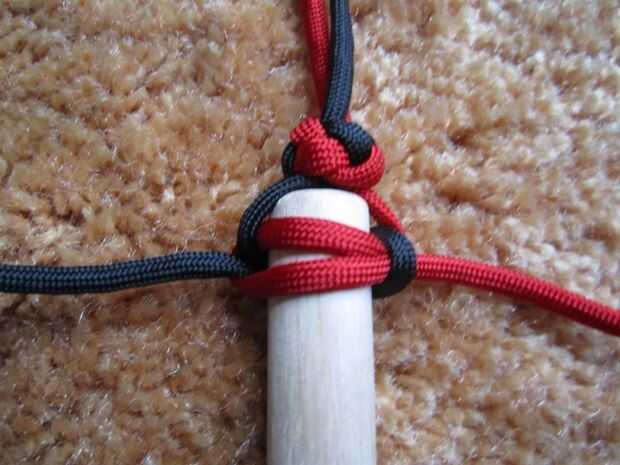 Paso 5: Atar el nudo de Salomón a la varilla de madera.