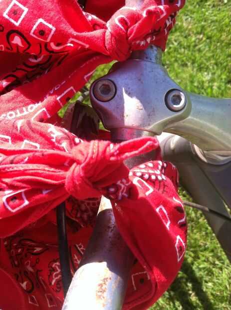 ¿Práctica Furoshiki: Usando un pañuelo como un portador de manillar de bicicleta (4 / 5 paso)