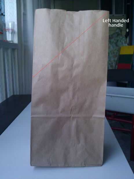 Este primer doblez es fácil. Doble la parte superior para que tenga un pliegue de 45 grados. La imagen muestra el doblez para hacer un mango para zurdos. (Imagen de espejo derecho dio manija.)