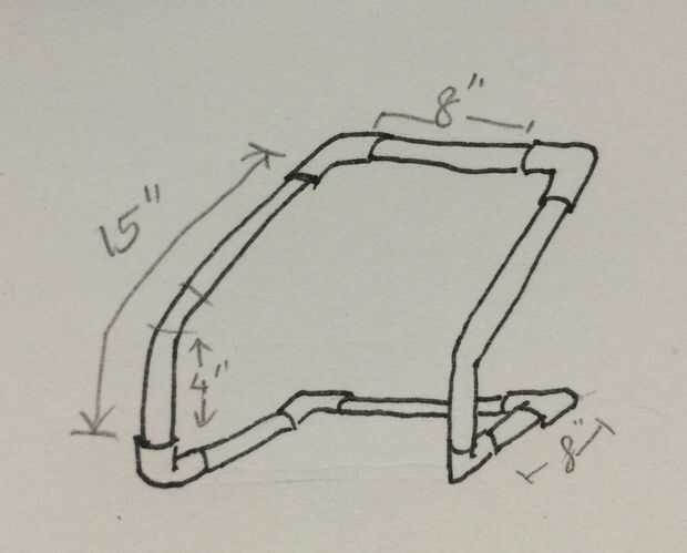 - (2) x 15": deseada altura donde la flexión comienza + doblado de zona (1-2") + longitud de la cabeza del tambor (= ancho) + espacio extra (~ 2"). En mi caso, es 4 "+ 1" + 8 "+ 2" = 15 "