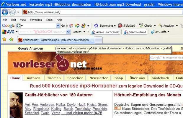 Vorleser.net ofrece una amplia variedad de literatura alemana para descargar MP3. La mayoría de ellos es gratuita. A menudo los archivos de texto para los mismos trabajos están disponibles, también. Algunos títulos tienen una cuota de conexión. Puedes jugar una oración o una frase una y otra vez hasta que lo entiendas. Puede seguir las palabras de impresión a través del archivo de texto.