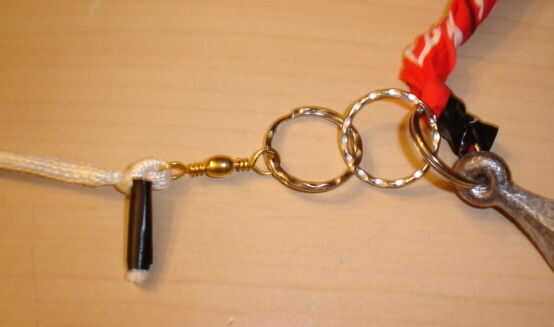 A. Coloque un llavero split en el lazo superior de la platina del Banco. (Nota: puede usar un plomo más ligero, 3, 2, 1 o 0,5 onzas si estás más cómodo con ese peso como un dardo de práctica. Wu Shu dardos son unos 7,5 oz.)
