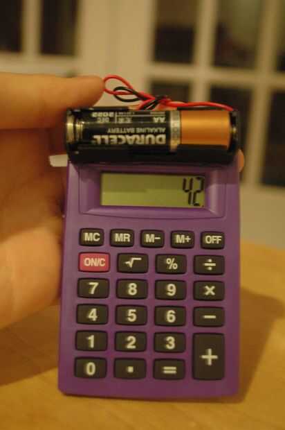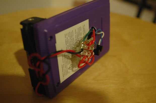 Primero desarmar la calculadora. usted debe ser capaz de encontrar el lugar donde lo caucho toca el tablero. Ésos son dos contactos de un interruptor. Ahora rastrear esos contactos hasta encontrar un lugar donde usted puede soldar los cables.