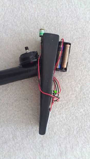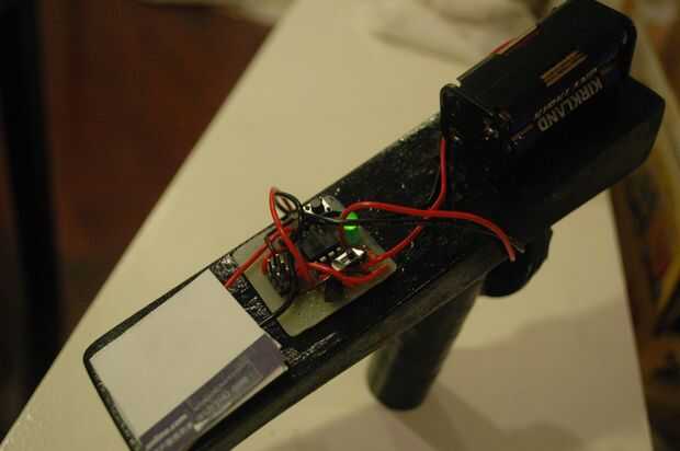 Bueno, usé un viejo rollo de toalla de papel como el mango y las sobras de un coche de madera derby pin como el cuerpo.