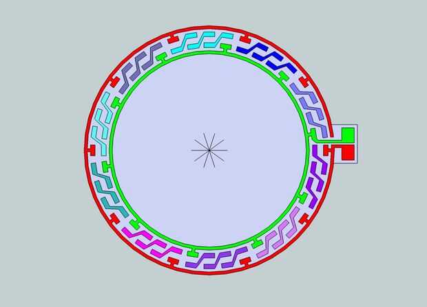 Para conectarlas hay será un camino conductor de 1mm en el interior del anillo y uno en el exterior. Dentro de estos anillos encajo los grupos de la serie. (ver imagen)