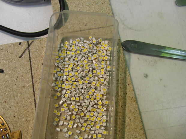 Cada LED pequeño tenía un marcado tiney tiney como si falta una de las esquinas (búscalo en la imagen)
