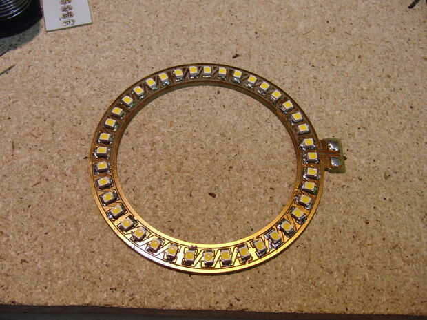 Esto marca la polaridad del LED, he hecho que todos los leds donde orientado con la marca más cercano del anillo exterior.
