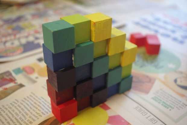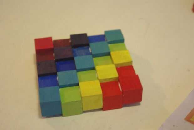 Haz tu cola y pegan los cubos para que formen el patrón que desee. El truco para esto es que hacer con ellos de pie y construir una escalera como la estructura. Esto se muestra en las fotos.