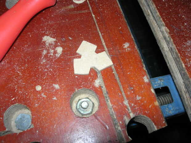 • Ahora usted tendrá que socavar teeny diminutos pedacitos y pedazos de la pieza del conector con una sierra de marquetería, hasta que pueda conseguir la pieza que encaja en las tres muescas. Me las arreglé para conseguir un ajuste muy apretado, así que no pegamento de madera era necesaria para que la pieza para quedarse.
