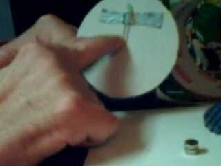 3) cinta su luz LED a su círculo de cartón cerca de la cabeza de la luz. La mejor luz de LED para usar es uno con un alambre largo. Si el tuyo tiene un cable corto, puede que necesite de la soldadura en una pieza de alambre o cobre. Cinta adhesiva que la luz está cerca del borde del círculo, y el alambre apunte hacia el centro del círculo de cartón.