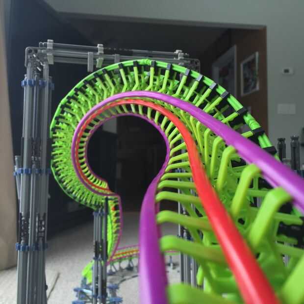 Acero trenzado es una montaña rusa de K'nex, automatizada con LEGO Mindstorms de EV3. Fue construido a lo largo de varios meses. Cuenta con tres inversiones: un lazo, rodillo de Heartline™ y un sacacorchos. Tiene ascensor y freno de ejecutar, con pasarelas. La estación está totalmente automatizada, con las puertas de la estación que abren y cierran. Esta fue mi primera montaña rusa con soportes de tubo.