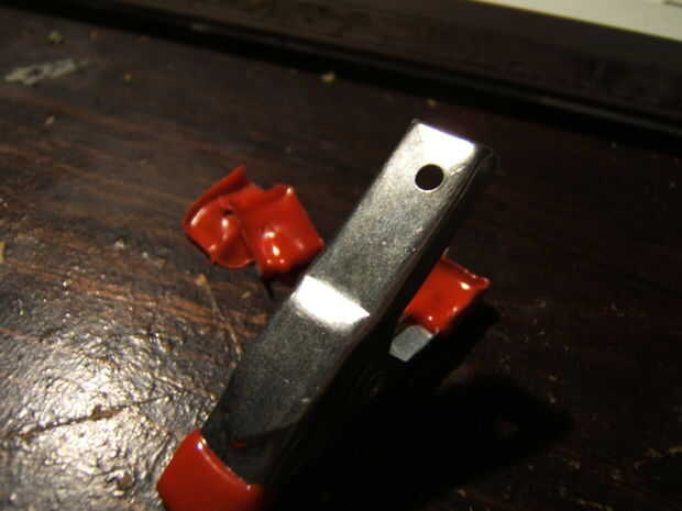 Creerlo o no, pero los recubrimientos de goma ponen en estas abrazaderas pelan apagado sorprendentemente fácil. Como usted puede conseguir su uña o la punta de un cuchillo bajo neath lo, rips derecha.