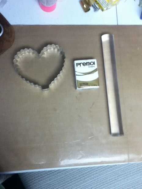 Primero Lávese las manos y limpiar su área de trabajo. Tomar el cortador de la galleta de corazón, arcilla blanca y el rodillo.