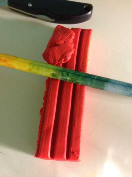 Rodar un lápiz sobre el ladrillo de la arcilla en hasta la misma altura que la goma. Luego con una pieza real comparar tamaños