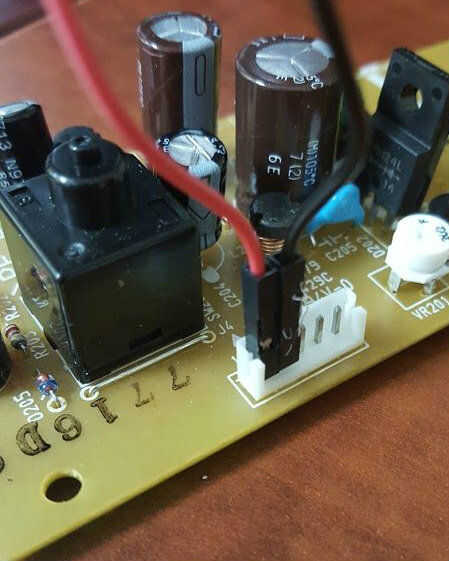 Tomar el otro cable que no está conectado a nada y enchufe la clavija derecha del regulador.