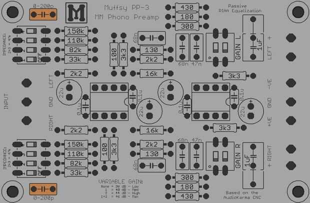 Si han determinado que su etapa de fono tiene capacitancia de entrada adicional, suelde los condensadores en lugar de las posiciones mostradas en los cuadros. Estos condensadores no están incluidos en el kit.