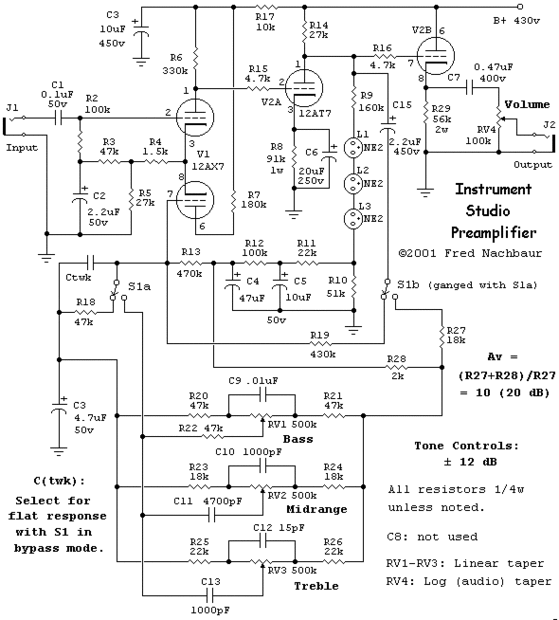 A continuación se muestran las vistas de la web donde conseguí el esquema. Fred hizo un buen trabajo de describir este así que por favor use su vista web y ver el artículo en un tubo pre amp de estudio. Él tenía otras articals agradable también.