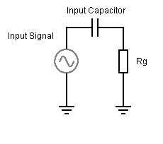 También queremos asegurar que la impedancia del circuito es alta, para no cargar efectos precedentes o la pastilla de la guitarra. Un buen valor de alta impedancia será entre 100k y 1Meg. Si se utiliza un valor más alto, el circuito será más ruidoso debido a ruido termal de la resistencia de ser amplificada, junto con el ruido en el JFET sí mismo. Personalmente utilizaría un valor de 100k como mi guitarra tiene pastillas activas. La impedancia de entrada es establecida por Rg (la resistencia de la puerta para el JFET) puesto que el JFET tiene cerca de ninguna corriente en la puerta...