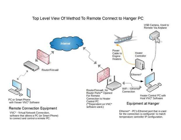 Refiriendo al diagrama asociado de este paso. Software VNC (conexión de red virtual) es necesario en el PC remoto o teléfono inteligente que se utilizará para conectar a la PC de Control del calentador. El PC de Control de calentador también tendrá software VNC instalado.