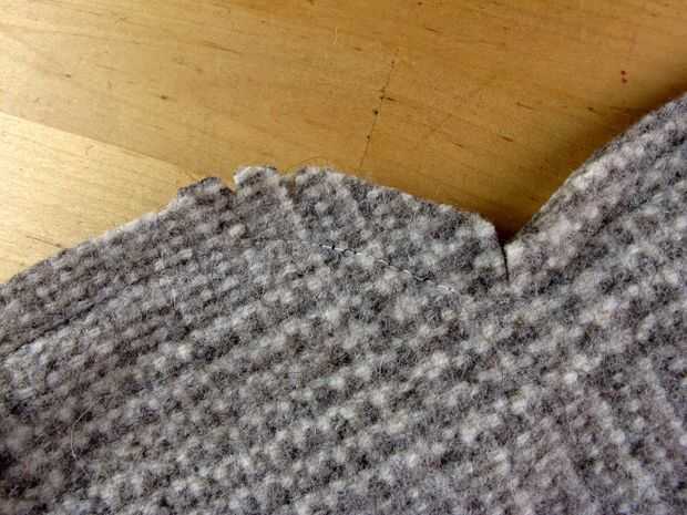 Cortar con cuidado casi pero no derecho hasta la costura en la esquina donde el cuello se une con el cuerpo y con cuidado cortar pequeñas muescas de la costura de los 'hombros'. Esto ayuda a la tela se sientan muy bien cuando usted voltee hacia.