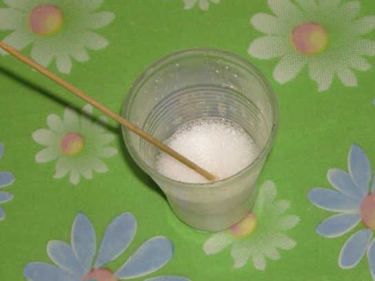 Tomar el marco de jabón (yo usé la forma plástica en forma de cuadrado). Añadir 1-2 gotas de neroli aceite esencial y dióxido de titanio pigmento a la base derretida hasta que se convierte en blanco. También puede Agregar una gota de aceite esencial de manzanilla para darle su aroma de hierbas jabón. Mezclar bien los ingredientes.