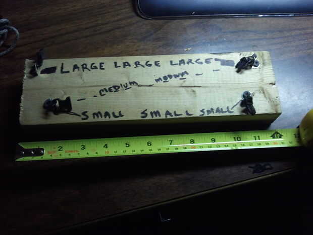 El bloque es 12" pulgadas de largo. Normalmente empiezo con un 8' longitud de la cuerda, y fácilmente puedo medir esa longitud si no tengo una cinta métrica útil.