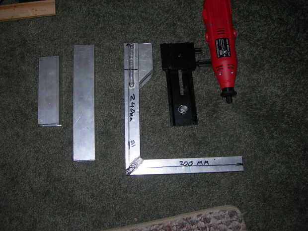 Taladros de 5mm por pie y extensor, en la línea de centro, aproximadamente 3/4" del borde superior. El orificio más posterior debe abrirse lo suficientemente grande para un poco de avellanado, los próximos a 6mm y avellanados para tornillo de cabeza plana. El extensor se 6x1mm roscado y atornillados a la vertical.
