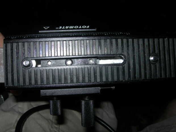 Lugar Fotomate extensor, alinear con el borde superior y utilice una broca de 5mm para marcar la posición del agujero. Primer agujero, el tap 6 x 1 y macro montaje base para extender. Línea de todo, utilice la llave Allen a través del agujero de 6mm roscado en la parte posterior para apretar el tornillo. Extensor de montaje en vertical con dos tornillos para comprobar que todo es 'cuadrado', solo tornillo entre la base de macro y extensor permite que estén alineados correctamente, tornillos de cabeza fresada significan extender siempre irá de nuevo en la misma posición en vertical. Cuando macro base es 'correcto' quitar extensor y segunda base montaje taladro 5mm a través de extender y macro base