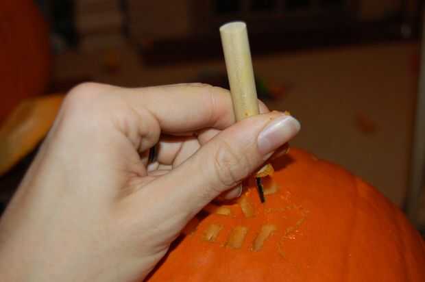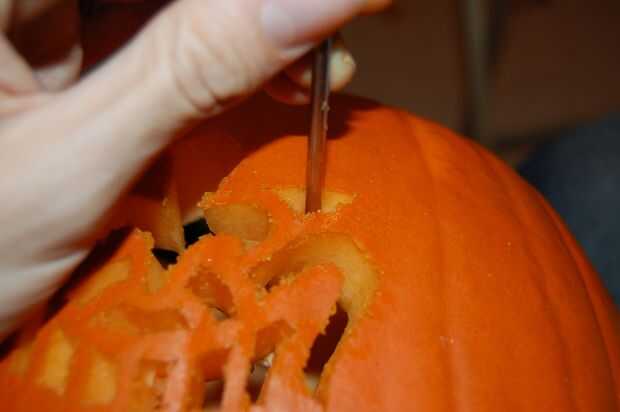 Por último, asegúrese siempre de que la hoja pasa completamente a través de la calabaza, o tendrás que volver a cortar las líneas. Eso es algo que quiere evitar.