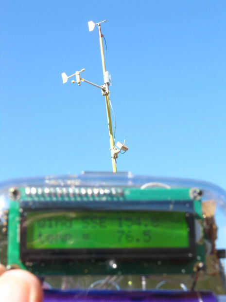 Esta veleta inalámbrico tiene alguna dirección de viento de características únicas con un codificador absoluto sencillo, económica y preciso. Algunas estaciones meteorológicas de consumidor comparación tienen una resolución de la dirección de viento limitada de 22,5 grados, actualiza cada 14 segundos. Dirección del viento de esta estación meteorológica tiene una resolución de una décima de grado, actualizado una vez por segundo. El módulo de Bluetooth LE, un HM-10, permite dormir entre las lecturas de la pantalla para ahorrar energía.