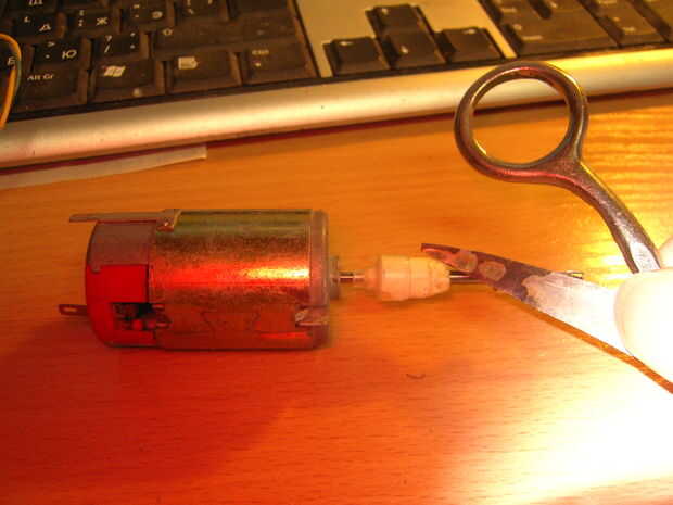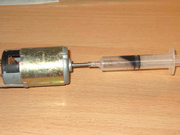 Ahora inserte el eje motor en jeringa y espere hasta que el epoxi se endurece (con acrílico óxido sólo tiene que esperar unos minutos)