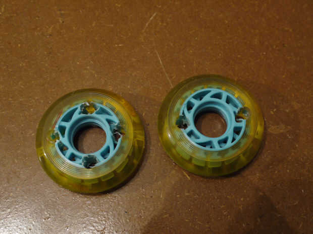 Para la primera rueda (uno que tiene sólo 2 agujeros), esta rueda se conectará directamente a la rueda de madera (wow, espero no empieza a confundirse) mientras que el otro se fijarán en el soporte L-cosa.