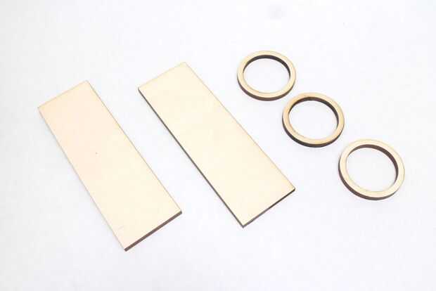 Hay un dos elementos para cortar de la madera contrachapada, montaje de tableros de los servos se atornillan a y marcos marco los indicadores para darles un aspecto más acabado. Estos se pueden cortar con una sierra de cinta, pero corte laser será rápida y precisa.