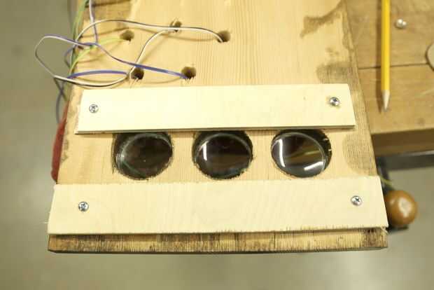 Tomar el corte laser placas de montaje y posición para que un servo está situado en el centro de cada ventana de calibre. Hay agujeros a cada lado de los servos para atornillar, un lado será más corto que el otro, un tablero va a necesitar ser cambiado de puesto sobre la abertura más.
