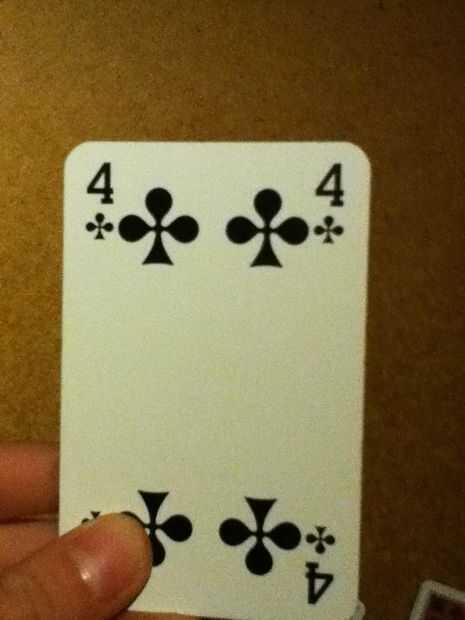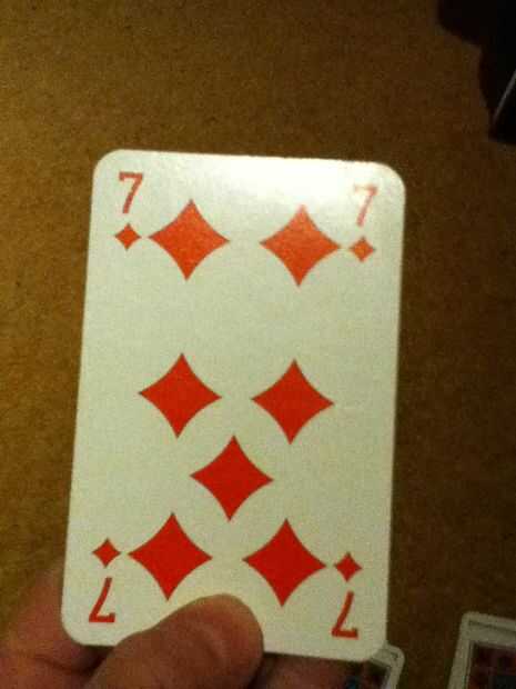 Primero debe predecir la primera carta que vi (7 de diamantes) cuando su realmente los 4 clubes y entonces predecir los 4 clubes y luego el 2 de espadas funciona es que predicen las cartas ves a partir de la primera carta que usted vio