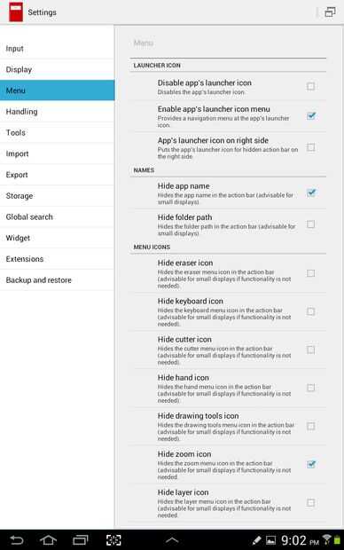 'Menú de icono de activar app launcher' es una gran característica que le da un menú de navegación bajo el icono pequeño cuaderno rojo en la parte superior izquierda. Les dejo esta habilitada y desactivar el botón 'atrás' de Samsung (opción 'Display' > 'Desactivar la tecla atrás') por lo que mi brazo no salir accidentalmente de la notebook.