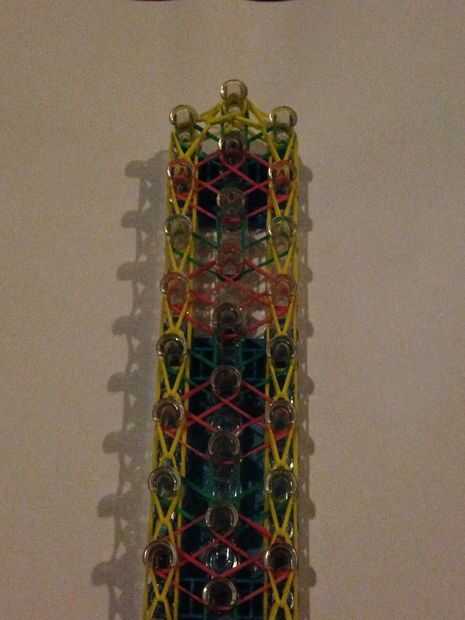 Ahora es el momento para conectar el centro de la pulsera. Esto es para el diamante: ir dentro de la banda que capsula y la banda superior a la derecha del gancho. Volver dentro de la banda que capsula y la banda superior próximo a la izquierda del gancho. Luego enganche la izquierda a la mitad, luego lo mismo con la derecha. Puedes hacerlo al revés también, justo antes de la izquierda, no hace un cambio. Esto es por la flecha (o lo que usted cree que es): gancho de la banda superior a la derecha. Luego enganche la banda superior próximo a la izquierda. Enganche la banda pasada adelante. Hacer lo mismo con los otros conjuntos.